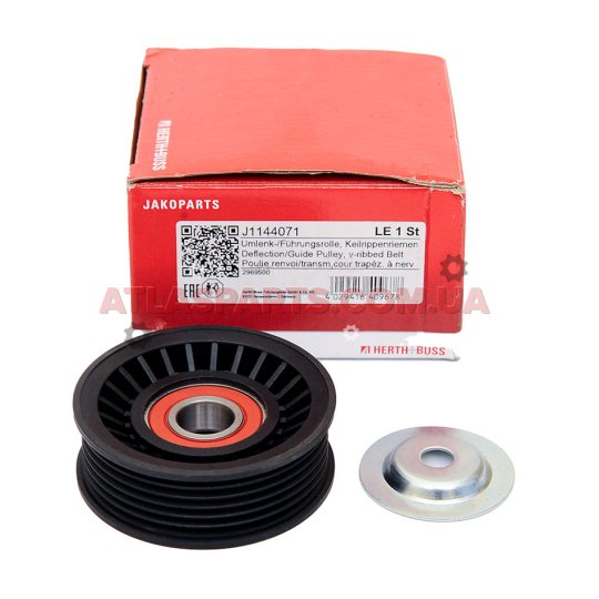 Ролік доріжкового паса, пластиковий паразитний на Pontiac Firebird виробництва JAKOPARTS, і аналоги Caffaro , BTA , Dayco , Dayco , Ac-Delco - GM , Dayco , Chrysler - Mopar , Gates , Gates